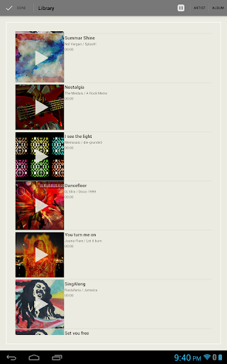 The simplistic and clean user interface of Music Player puts the CD cover arts of your song collection at the heart of the music experience.