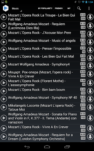 Music & Video center - the best application for search, download and play music and video files from the Internet.