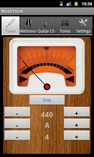 MusicTools: an app for musicians that includes the tuner, the metronome, a chords finder and a frequency generator from 50 to 999 Hz.