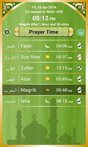 This app helps us to say our Daily Prayers on time, 5-times a day. When you open this app it will get your location and shows prayer times of that location just set Calculation Method and Juristic Method according your needs. It means where ever you are, you can know the prayer times of that place.