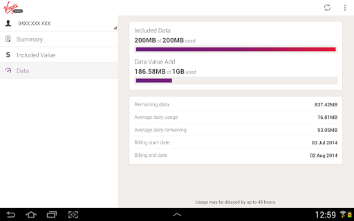 ✔ Check your Virgin Mobile Australia mobile phone usage on the go
