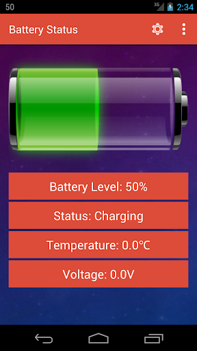 The My battery Status app lets see the status of your battery quickly. This allows you the percentage, temperature and battery voltage with the My battery Status. and My app allows you to quickly and easily zein if there is enough energy in your battery is to play a Game or something else to do. The My battery Status app is simple, fast, and free to use and all in a beautiful design. In the My battery Status app lets you display a realtime message in the status bar with all the information that this app has to offer and is easy to convert to or from. If the realtime notification to stat in the My battery Status app then restart the message automatically at startup of the unit. The app also has its own my battery Status Widget in which also the battery percentage, voltage and temperature can be seen.