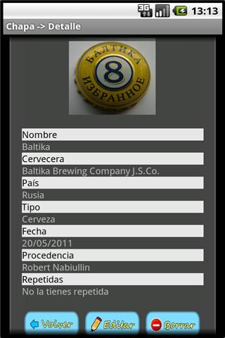 - Add new bottle caps to the collection from a picture taken with the camera phone, or a photo stored in the gallery, with the option of crop the part that interests you in case the picture contains multiple bottle caps.
