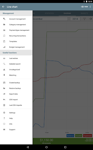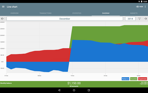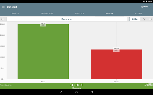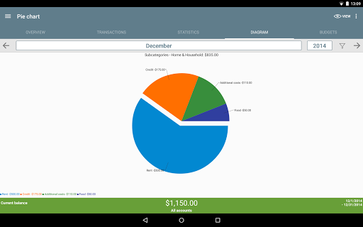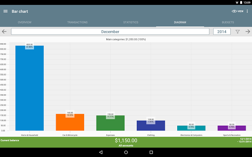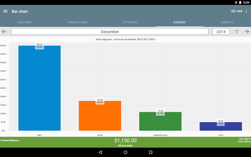 • Visualise the statistics as a table or graph and see where you have spent your money.