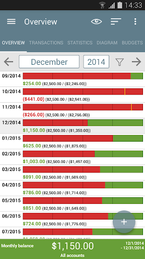 Use the individual transactions and recurring transactions feature to get an idea of your expenses over the next couple of months and see how much money you have available to spend. The app also gives you a graphical overview of the information, making it easier to plan (larger) purchases over the upcoming months.