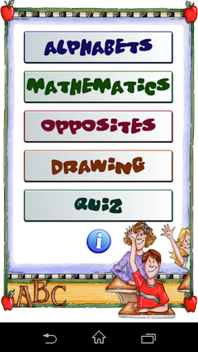 This is a learning application for kids. This app helps the kids to learn alphabets, mathematics, opposite words, drawing etc.