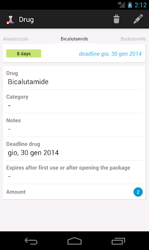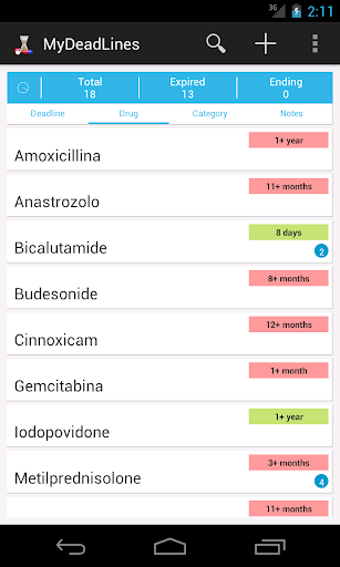 With MyDeadLines every time you buy a drug, logs in the application with the expiration or after first use. The notifications will alert you of the deadline, so you can throw away the expired drug and possibly buy again.