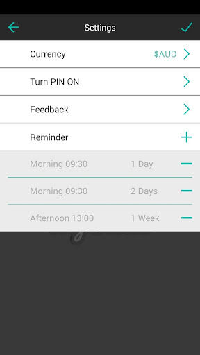 With My Debits, you can set when you want reminders to appear on your phone. You can set up to 3 unique times for a 'pop up' to appear on your phone.