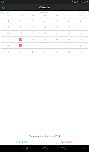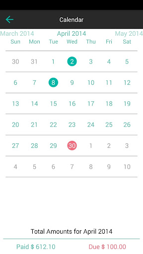 A calendar view shows a summary of your debits and bills, showing them as paid/unpaid. Also, My Debits will show the total amount paid for each month as well as the total amount still to be paid for each month.