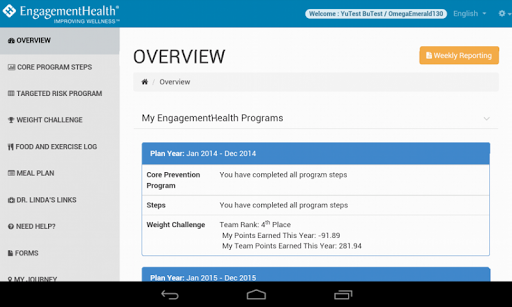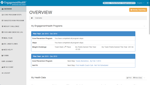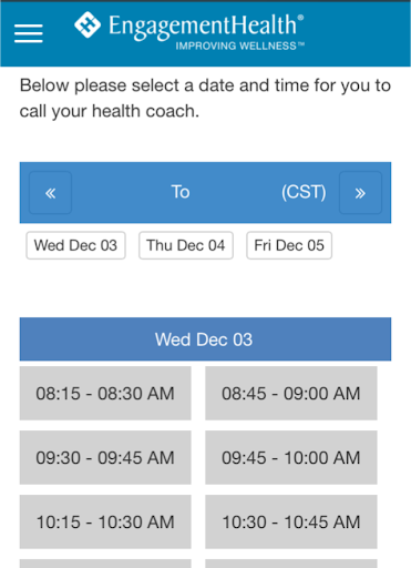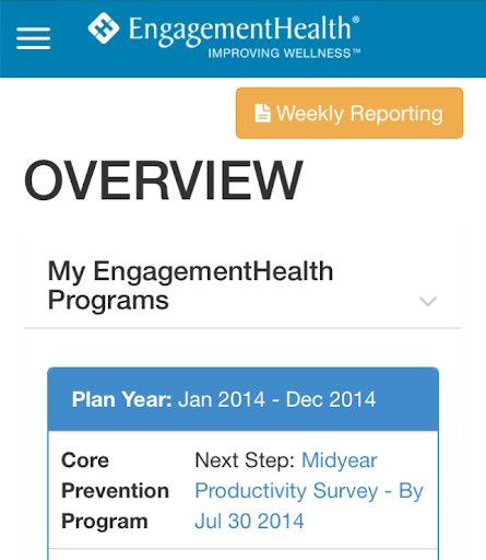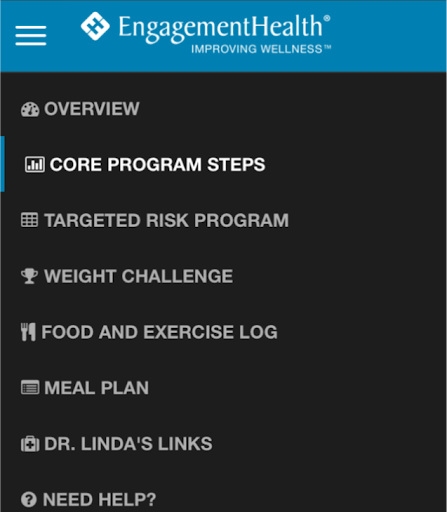 Once you download the EH app, existing users will be able to log in with their EngagementHealth username and password. New users can sign up and follow the prompts to create a new account and a username and password. Once an EH member, you will have easy on-the-go access to manage your weekly reporting, track your biometrics, see your next program steps, complete program requirements, and schedule or reschedule health coach calls. Everything you were able to do online you can now do from the convenience of your phone or tablet.