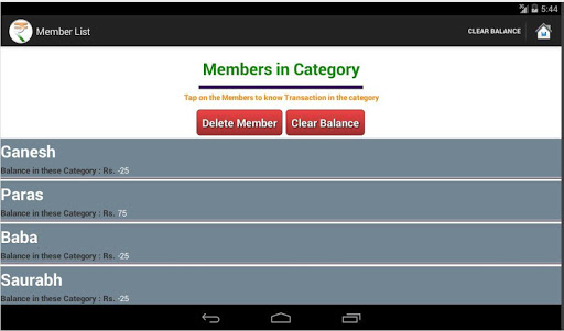 - Click on ListView of Members to know tha Transaction Record of these category.