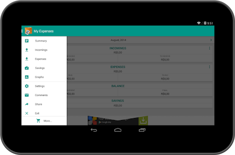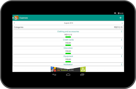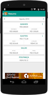 The My Expenses is an Android application to control easy and simple to their personal Expenses, allowing for the inclusion of amounts received and expended during the month. You can categorize your expenses and incomings to facilitate the organization and know where you are spending more.