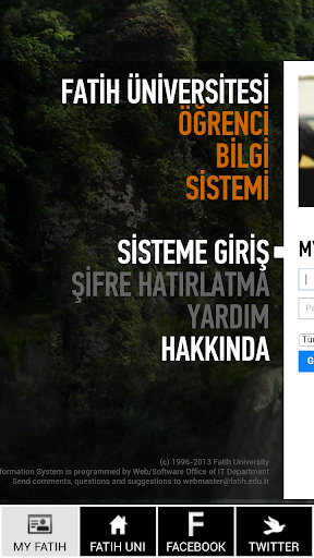 İncelemekte olduğunuz uygulama Fatih Üniversitesi My Fatih ( www.my.fatih.edu.tr ) öğrenci bilgi sistemine doğrudan bağlamanıza yardımcı olan, kullanıcının işlemlerini kolaylaştırmaya yönelik internet tarayıcısı temelli en ufak bir güvenlik açığı olmayan bir uygulamadır.