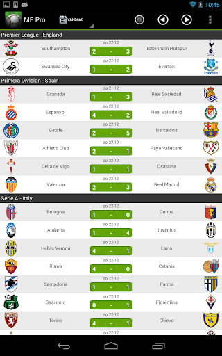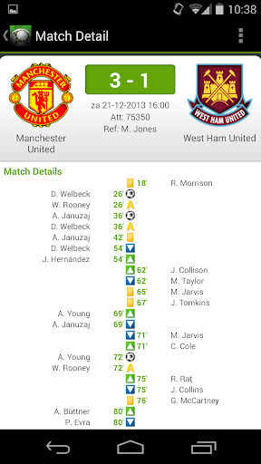 Providing a huge amount of leagues from all over the world (check below)! Follow your favourite teams as they play live matches, with directly updated information about scored goals, penalties, cards and substitutes.