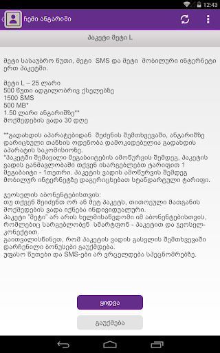 - შეიძინოთ ინტერნეტ და სმს პაკეტები;