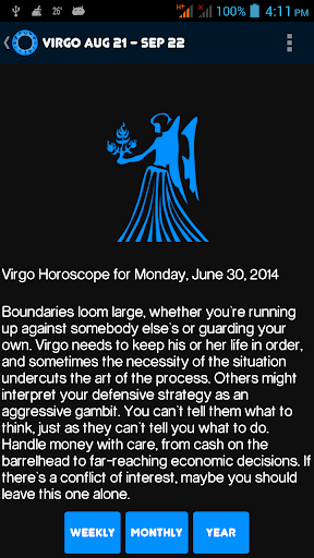 My Horoscope is the application, which is shown the daily, weekly, monthly and yearly astrology prediction based on your Sun Signs.