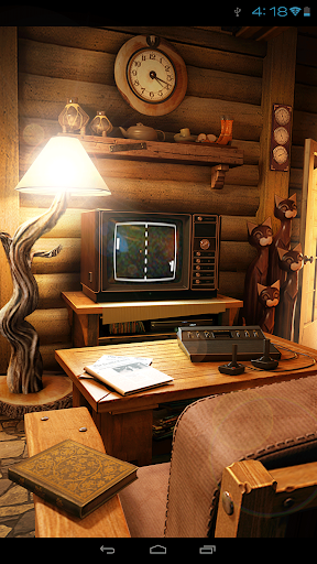 Enjoy the amazing and soothing atmosphere of My Log Home 3D interactive live wallpaper of log cabin situated in wild nature with the view of the mountains.