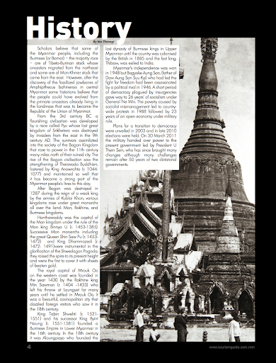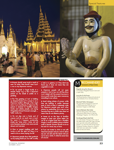 A comprehensive quarterly guide to hotels, restaurants, shopping centres and markets, as well as up-to-date information on popular tourist destinations of Myanmar.
