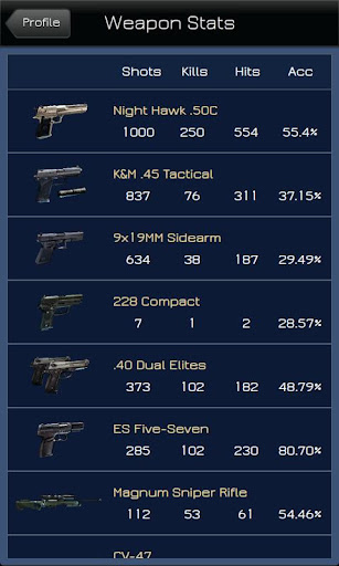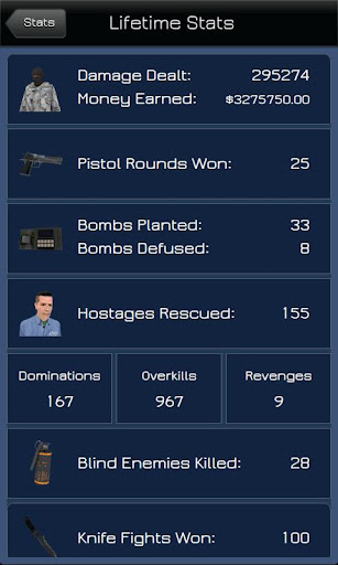 You can check your and your friends statistics such, last match played, weapons, maps and lifetime statistics.