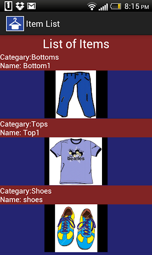Add Images of your tops, bottoms and shoes by clicking on the camera function provided in app or add from gallery, In your free leisure time play with the mix and match functionality by exploring your wardrobe on your phone and form exciting combinations which will give a boost to your personality without manually exploring your wardrobe and it saves lot of your precious time too!!