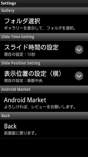 スライド時間の設定(5秒から60秒の5段階)