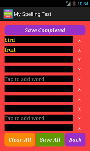 You can add up to 10 words for your spelling practice. Tap the text field to bring up the keyboard to type in. Click "Save All" after adding/editing the words.
