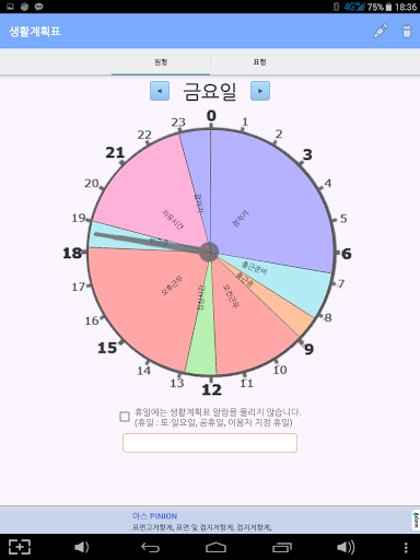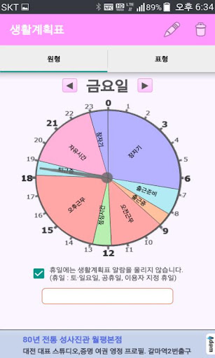 3. 생활계획표(1.04부터 위젯 제공) : 요일별 생활계획표 작성 기능, 계획의 시작시간을 알리는 알람 선택 기능