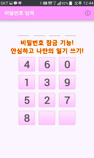 5. 비밀번호 잠금 기능 : 비밀번호 잠금을 통해 안심하고 내용 작성 가능