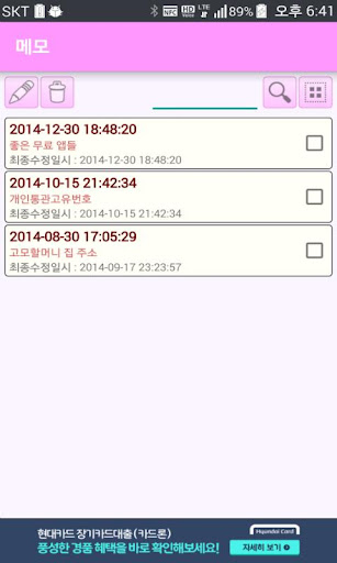 2. 메모 기능 : 단순한 내용의 메모 입력, 입력한 메모를 검색으로 찾는 기능