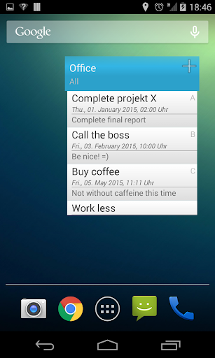 ✓ Home screen widget for fast creating of Tasks / TODOs