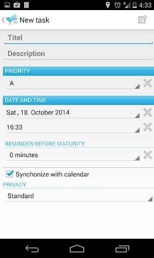 ✓ Set the privacy level of your Tasks / TODOs when synchronzing with the Calendar