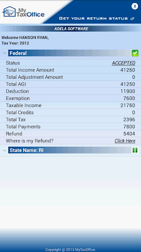 - Check the details of your tax return. You can check the status of your Federal return, total adjustment gross income, deduction, total payments, amount owe or refund.