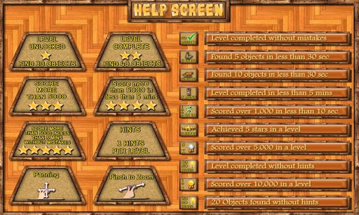 Each level features 10 distinct achievements to unlock (100 in total for the app), and 40 meticulously well-hidden objects to find (400 in total for the app).