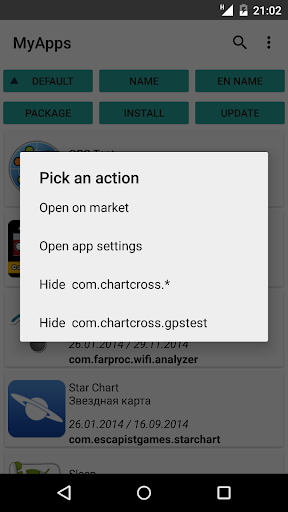 Long-click on the application to open it on Google Play or switch to its system settings.