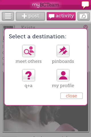 MyBCTeam is the only social network dedicated to breast cancer survivors and women recently diagnosed. Stay connected & share with other women like you who understand.