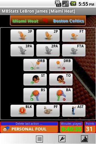 Scoring statistics it's easy, intuitive with MyBasketStats, and lets you enjoy the match.