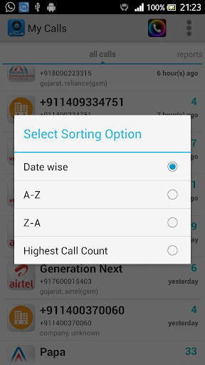 My Calls includes call log details by Contact Number with one click summary and Subscriber details. Also provide operator and state details of the caller.