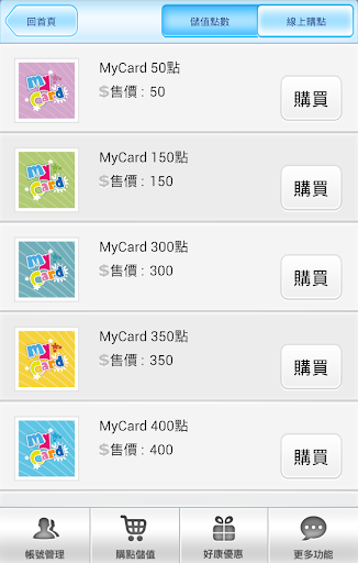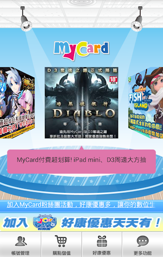 提供MyCard會員進行快速儲值及相關活動訊息的服務提供。