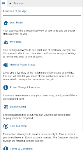 The MyEskom App provides all users direct access to information that applies to electricity consumption and help users consume electricity more efficiently.