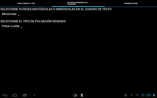 MyKeyboDroid permite numerosas opciones de configuración: tipo de teclado, idioma (alemán, inglés, castellano, francés e italiano), color (fondo, letra y borde), tamaño de letra, tipo de pulsación… También permite la configuración de nuevos teclados mediante archivos XML.