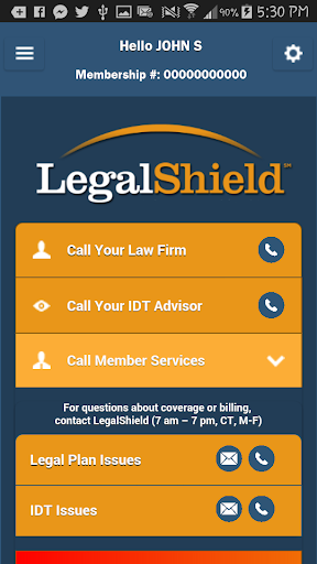 At the touch of a finger, get connected to your LegalShield provider law firm or your identity theft advisor for legal guidance you can trust. Must have a Wi-Fi or data connection to access your member information.