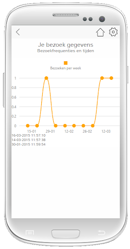 • Live tile: Weergave grafiek met bezoekfrequentie op bezoekenknop