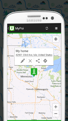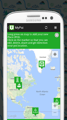 • Help you differentiate between the different landmarks like hospitals, theaters, airports, restaurants, schools, beaches, business centers, culturally / religiously important hangouts with appropriate symbols. You name it and MyPoi will mark it with just a long press on the map.