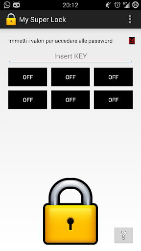 - l'applicazione non richiede alcun tipo di permesso, quindi non ha collegamenti con l'esterno, ne con internet ne con bluetooth o qualsiasi altro mezzo connettivo; inoltre tutti i codici sono criptati in locale da una chiave privata e decriptati solo per far ricevere la KEY, dopo averla decriptata (per non perdere le password, ma è consigliabile modificarla appena si riceve la KEY). ecco perché MySuperLock è sicura al 100%, unica nello Store!