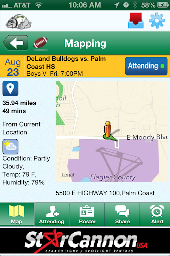 Direction to every game. Get directions from where you are to the game. How many times have you been lost trying to get to an away game? Use directions feature to drive you right to the correct game. You will know how far you are and how long it will take at your fingertips. You don't even have to put in the address.