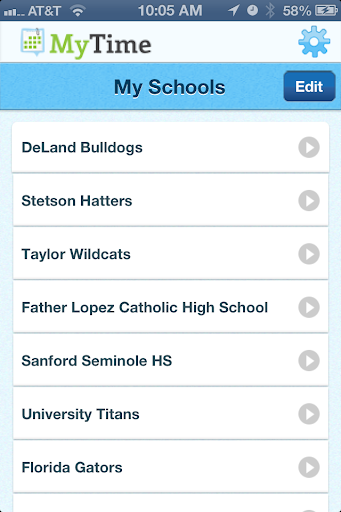 MyTime Schools was designed for fans, students, faculty & parents of your favorite school. Keep track of ALL sporting events for your school. Never miss your favorite sport team, ever again! MyTime will keep you organized and on time with weekly mobile alerts and help you stay connected with your closest friends.