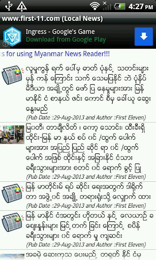 Myanmar News Reader is news and articles application. It collects the latest news/articles from famous myanmar news sites.You can enjoy collection news in myanmar version or english version.