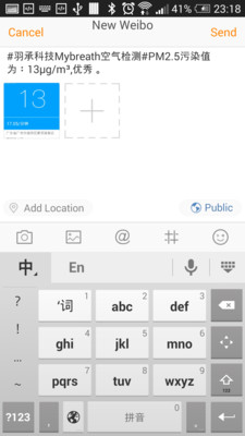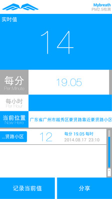 本应用为羽承科技“Mybreath空气检测仪”产品的配套应用,此套产品可以用于检测空气PM2.5的污染情况然后进行记录与分享让用户时刻掌握所去的场所的污染情况。产品与应用连接后,在应用上可显示实时的污染值,用户可根据污染情况进行记录,分享等操作,而且应用结合地理位置可更好的分清污染的时间与地点。