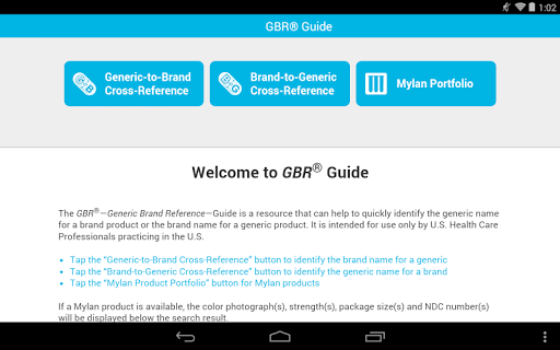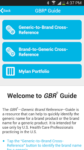 Since 2003, Mylan Inc. has provided a print edition of the GBR Guide to U.S. health care and pharmacy professionals (The printed edition can be ordered by visiting mylanpharms.com). The GBR Guide became available as an app in 2012.