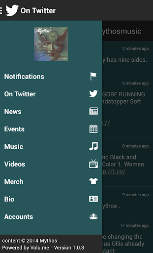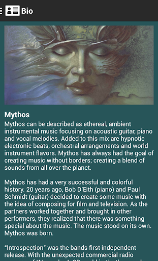 Official mobile app for Mythos. This app is managed by the band. Access Mythos Songs, Music Videos, Live Interviews, News Releases, Upcoming Live Events and more. Interact with the band and other fans from around the world. Receive local venue and ticketing information via push notifications for upcoming Mythos concerts near you. Quickly add concert details directly to your smartphones calendar, buy tickets or invite your friends to attend the concert with you through Facebook or email.